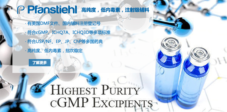 “熱烈祝賀Pfanstiehl的注射級甘氨酸Glycine(G-140)喜獲CDE登記號F20250000403, 這是Pfanstiehl產品獲得的第18個CDE登記號!”甘氨酸在醫藥輔料制劑中應用廣泛,, 可作為緩沖劑,增溶劑,穩定劑等,具有諸多優勢。Pfanstiehl秉承一貫高品質理念,為滿足全球生物制藥行業對于高品質甘氨酸的需求,隆重推出的注射級甘氨酸Glycine (G-140), 具有超高純度,超低內毒素,超低金屬殘留的特點,單獨檢測29種金屬離子,并且新增DNA,RNA,DNA酶,RNA酶和脂肪酶,亞硝酸鹽等多項質量指標的檢測,符合多國藥典規定(USP, EP, BP, JPE, ChP),可用于生物治療性藥物和疫苗的生產。產品信息:· 產品名稱:Glycine, High Purity, Low Endotoxin, Low Metals, USP, EP, BP, JPE, ChP (G-140)· 中文名稱:甘氨酸· 分子式:C2H5NO2· 分子量:75.07 g / mol· CAS號:56-40-6· 產品貨號:G-140產品特點: · 超高純度,超低內毒素,超低微生物含量,超低金屬雜質殘留· 質量指標新增DNA,RNA,DNA酶,RNA酶,脂肪酶和亞硝酸鹽檢測· 符合多國藥典:USP, EP, BP, JPE, ChP· 符合ICH Q3D標準· 符合GMP標準· 已獲DMF和CDE登記號 產品應用:· 緩沖劑· 穩定劑· 增溶劑如果您對Pfanstiehl注射級別Glycine G-140感興趣,歡迎聯系Pfanstiehl 中國區代理商北京西美杰科技有限公司獲得如下詳細的產品概況說明文件和測試樣品。Pfanstiehl Inc.最新產品系列如下,歡迎聯系北京西美杰科技有限公司獲取100g裝免費樣品。北京西美杰科技有限公司為Pfanstiehl中國代理,為客戶提供完善的技術支持與售后服務。歡迎撥打西美杰客服電話400-050-4006或者登陸網站www_xmjsci_com.dhslyj.com了解更多信息。 更多>